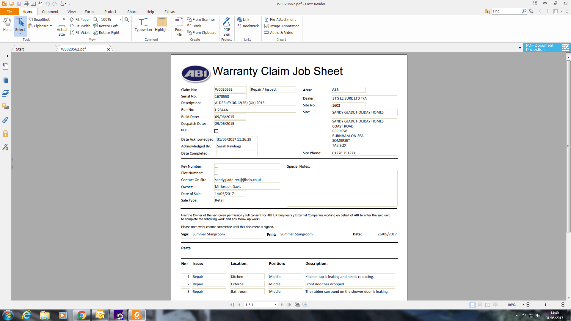 Park_Company:Sandy Glade Caravan Park - DO NOT SEND PARTS DIRECT TO SITE