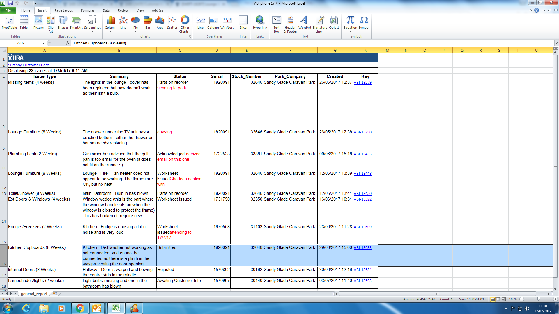 | Status | Parts Recieved [ 10003 ] | Worksheet Issued [ 10004 ] |