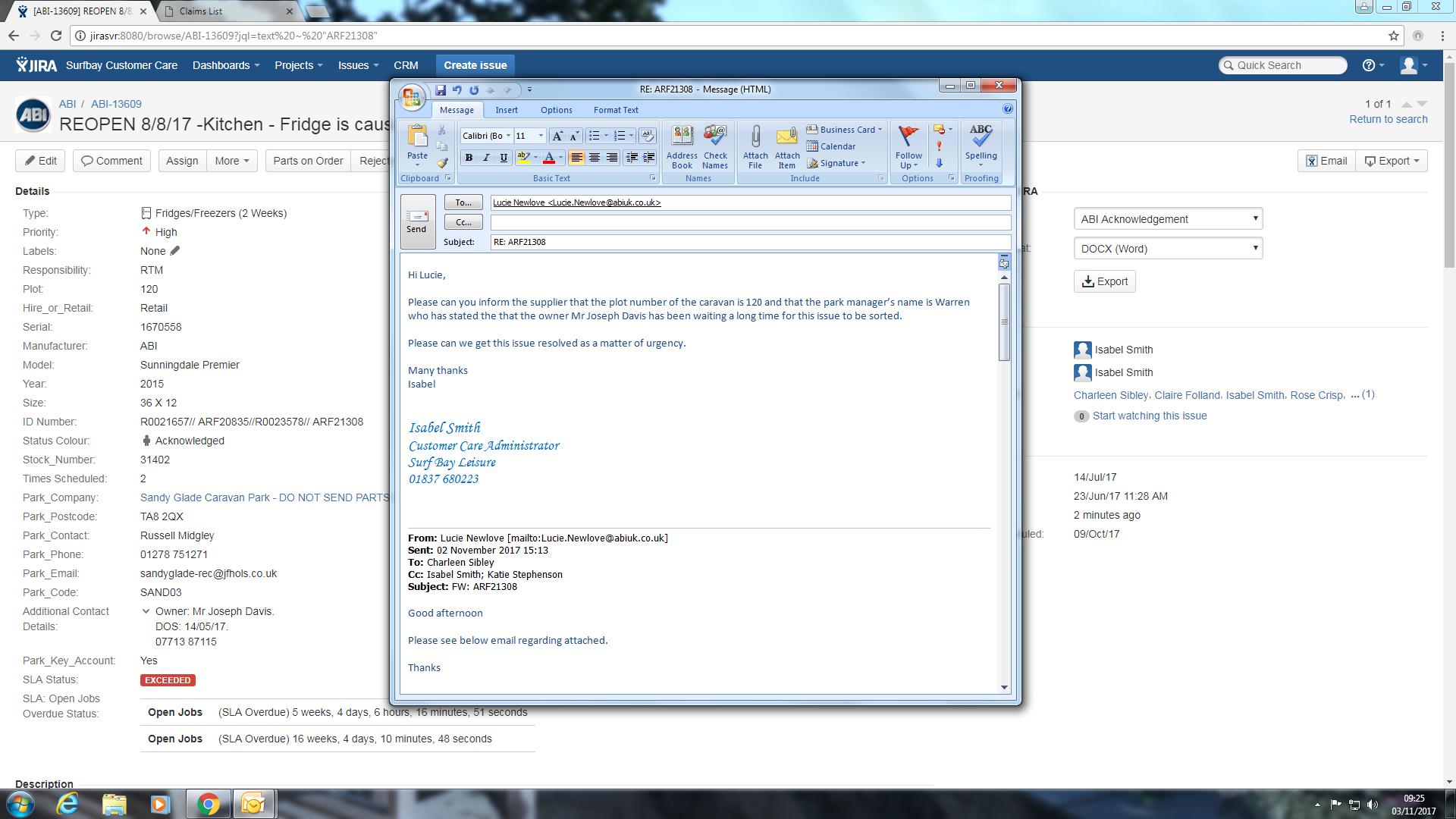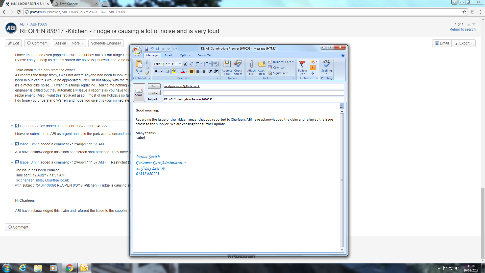 | Assignee | Claire Folland [ claire ] | Isabel Smith [ monica ] |