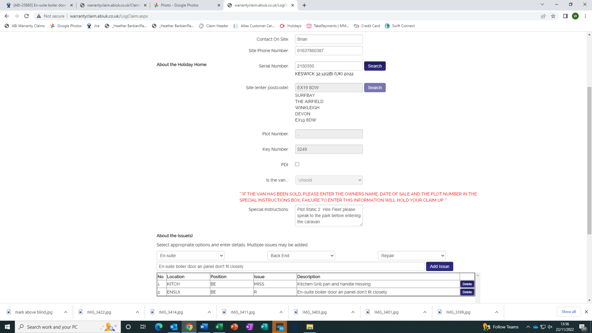 ABI engineer attended and resolved this claim