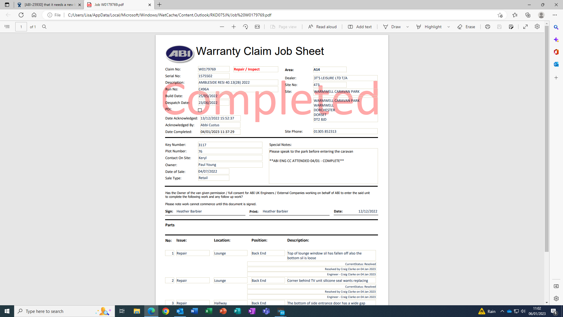 Lisa Taylor (Inactive) added a comment - ABI engineer resolved claim