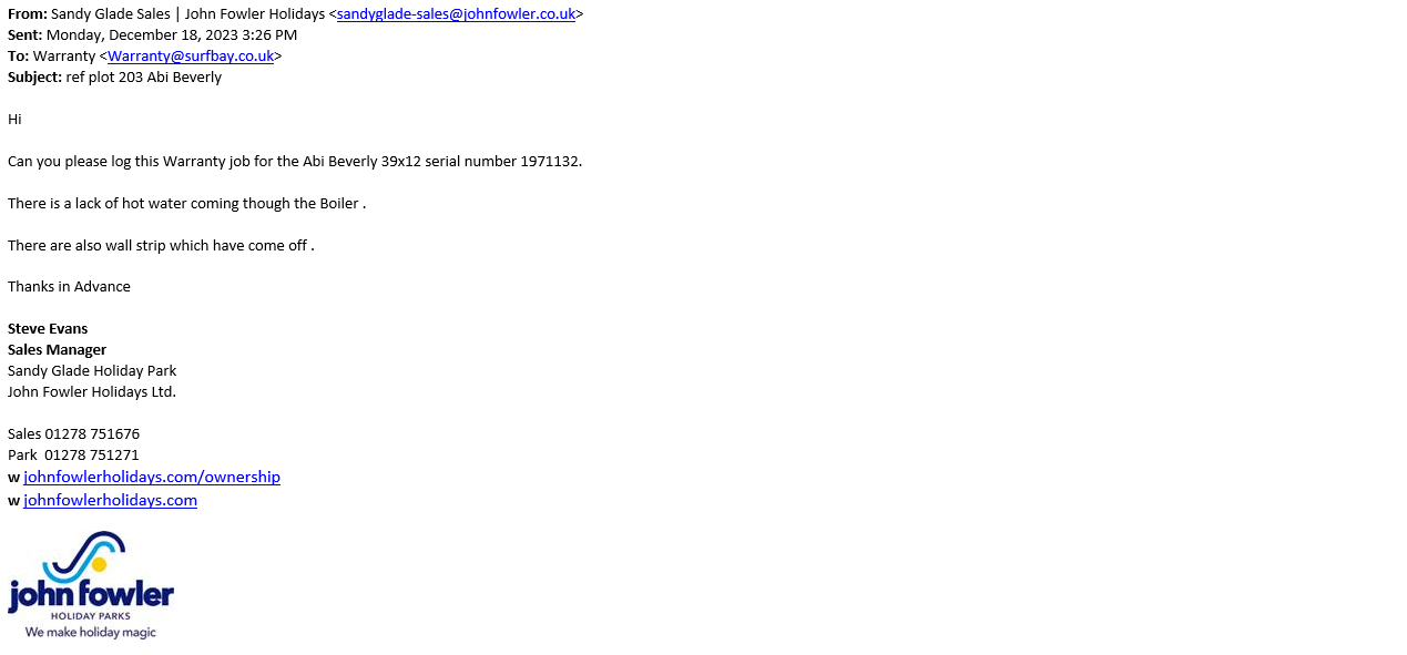 Park_Company:Sandy Glade Caravan Park - DO NOT SEND PARTS DIRECT TO SITE