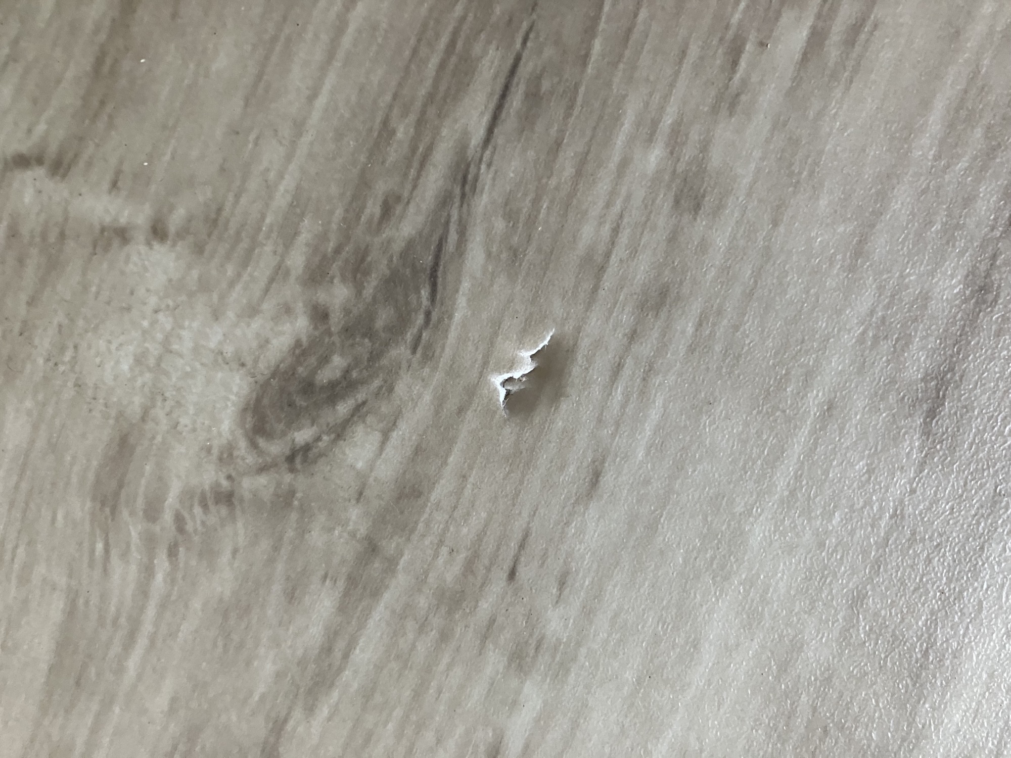 Kitchen - Damage to the lino in front of sink (2nd slat out)