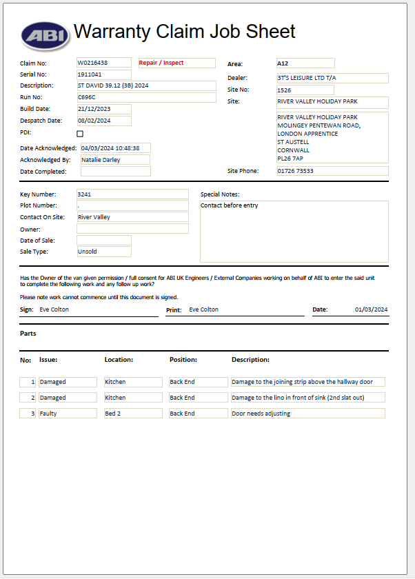 • Status: Worksheet Issued