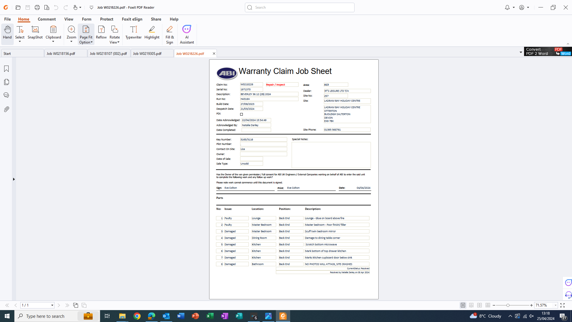 • Status: Worksheet Issued