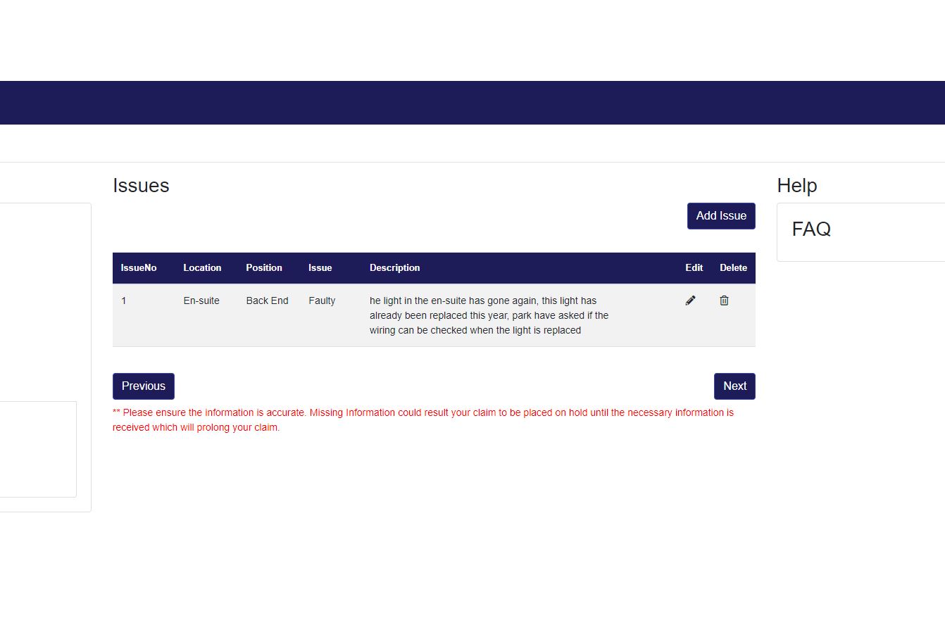 1. W0225089 he light in the en-suite has gone again, this light has already been replaced this year, park have asked if the wiring can be checked when the light is replaced