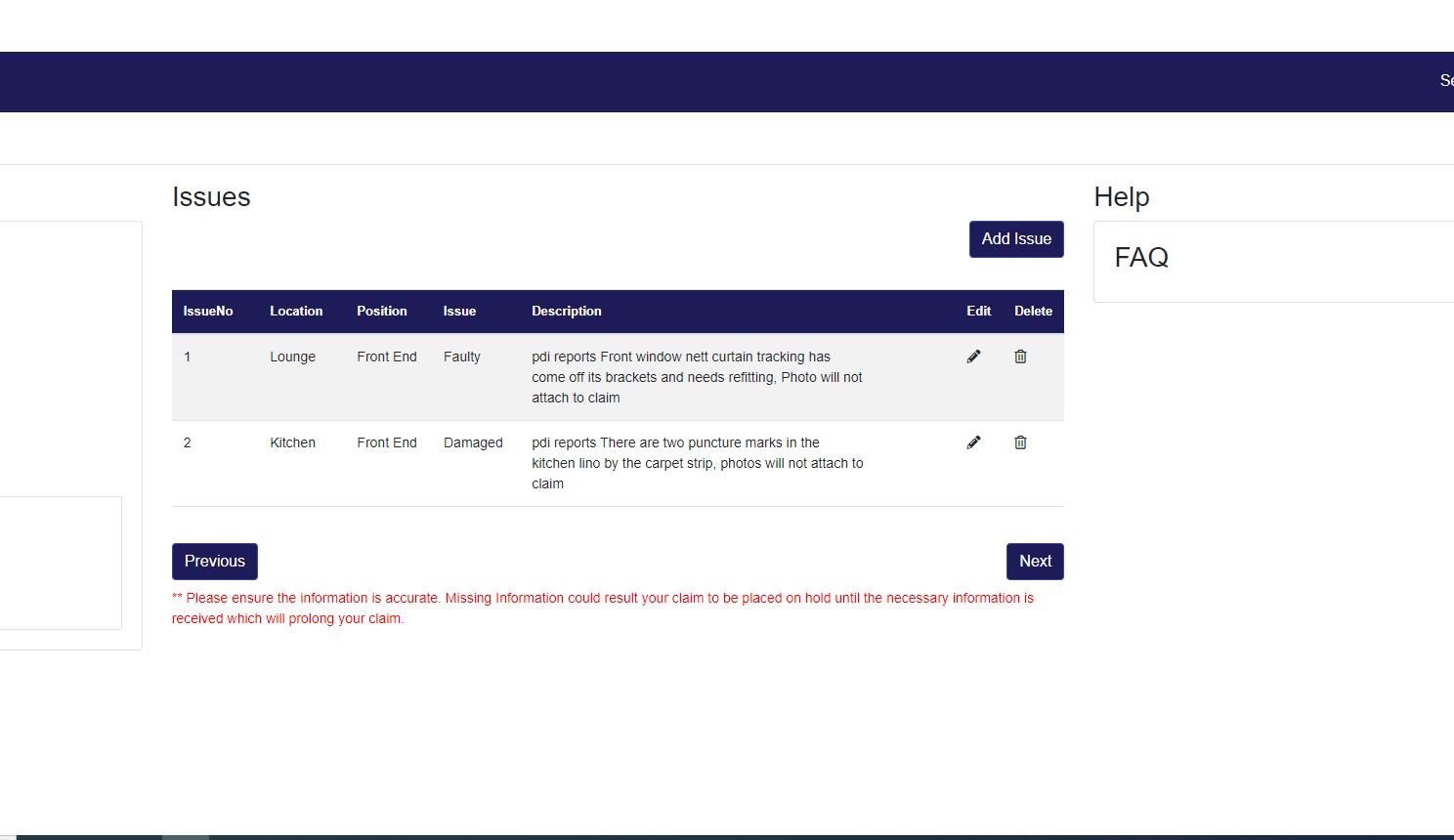 Summary CLONE - pdi reports Front window nett curtain tracking has come off its brackets and needs refitting pdi reports There are two puncture marks in the kitchen lino by the carpet strip