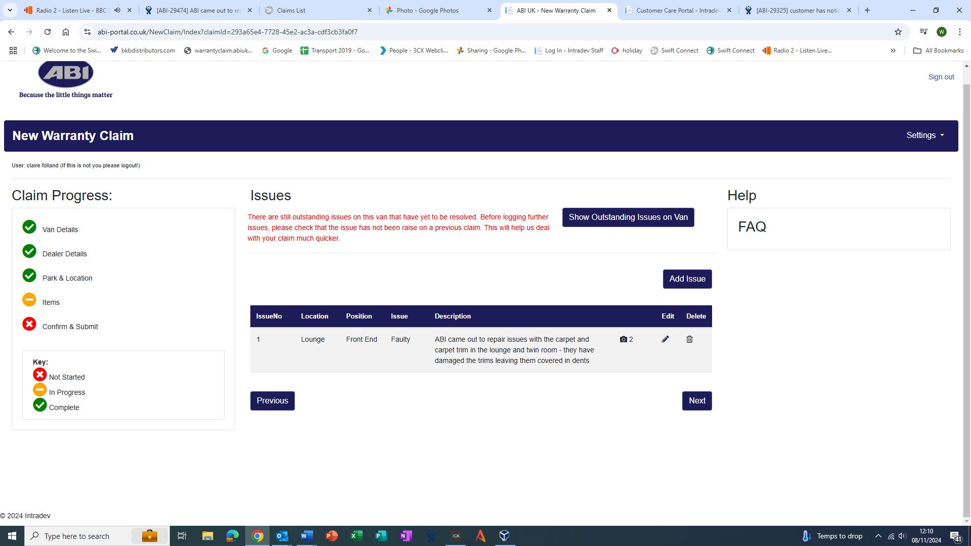 They came to fix issues that were logged, (Bedroom trim was dented on arrival, lounge carpet was short and did not reach the trim) both issues were accepted, and ABI have attended. In doing so have damaged the carpet trims. How can they now say they do not accept it. The photos you have been sent clearly show a before and after.