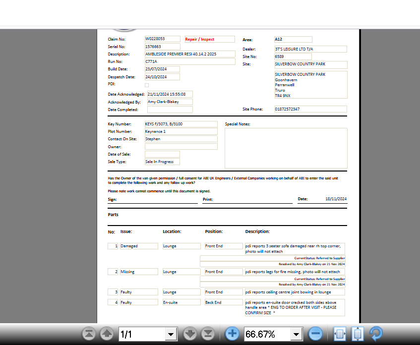 We have now referred the following issue(s) to our supplier.
