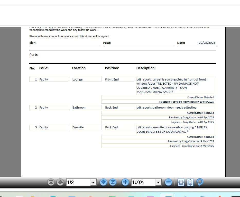 | Status | Parts Recieved [ 10003 ] | Worksheet Issued [ 10004 ] |