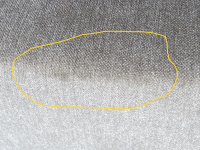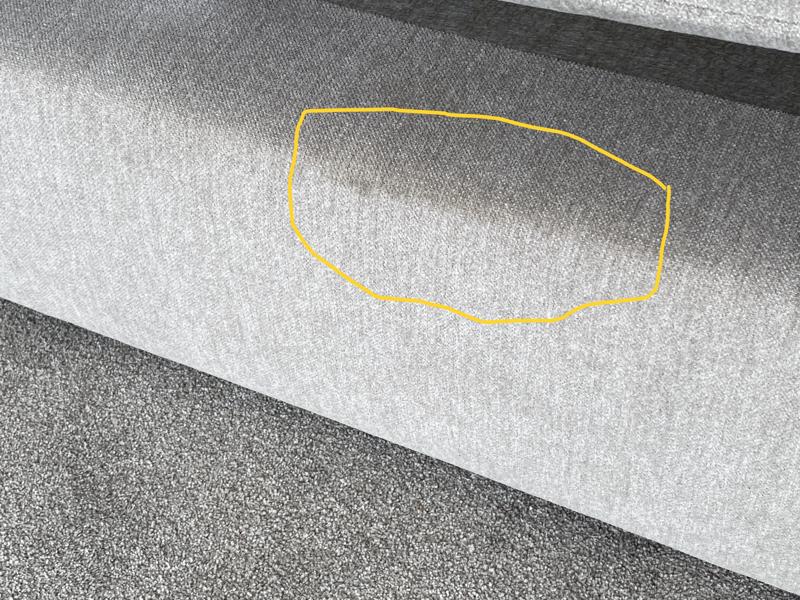 The two-seater settee has a stain on the front edge