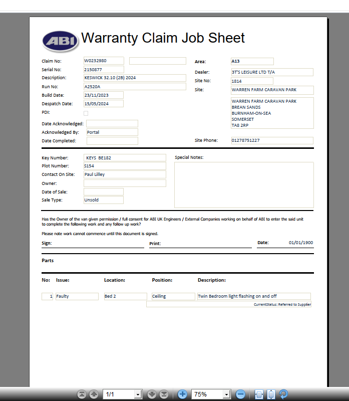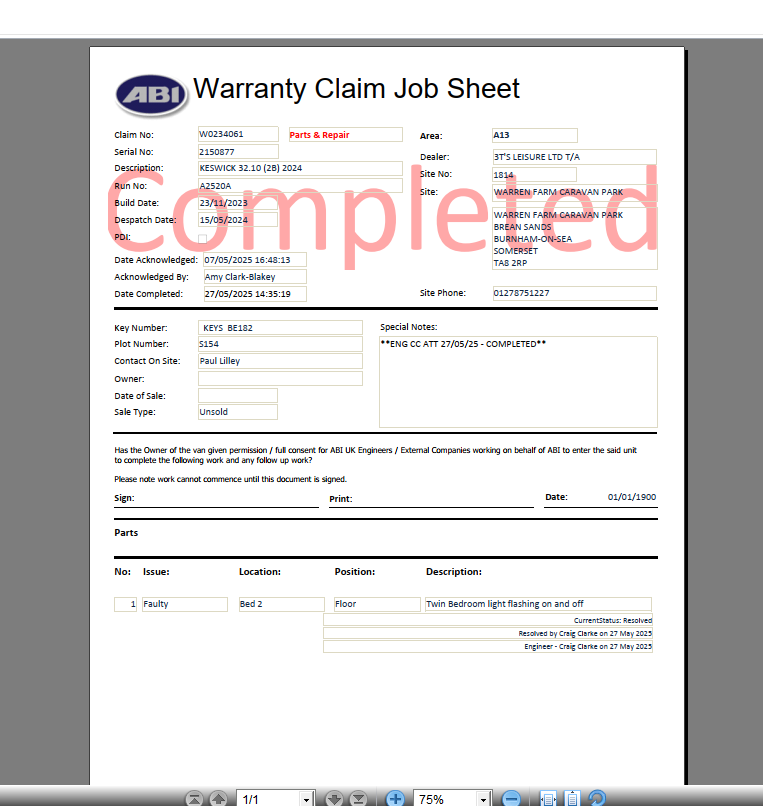 | Park_Address | Warren Farm Holiday Centre Ltd |