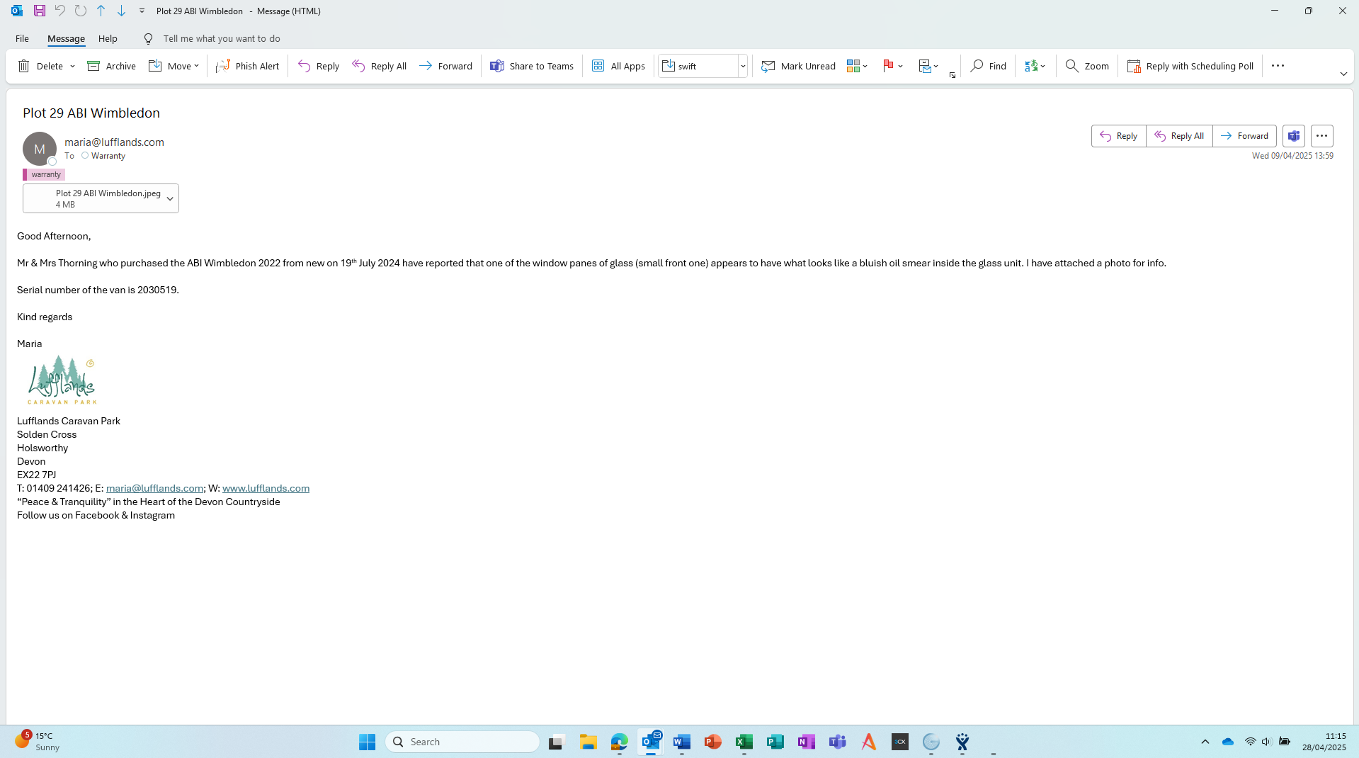 | Park_Address | Lufflands Caravan Park |