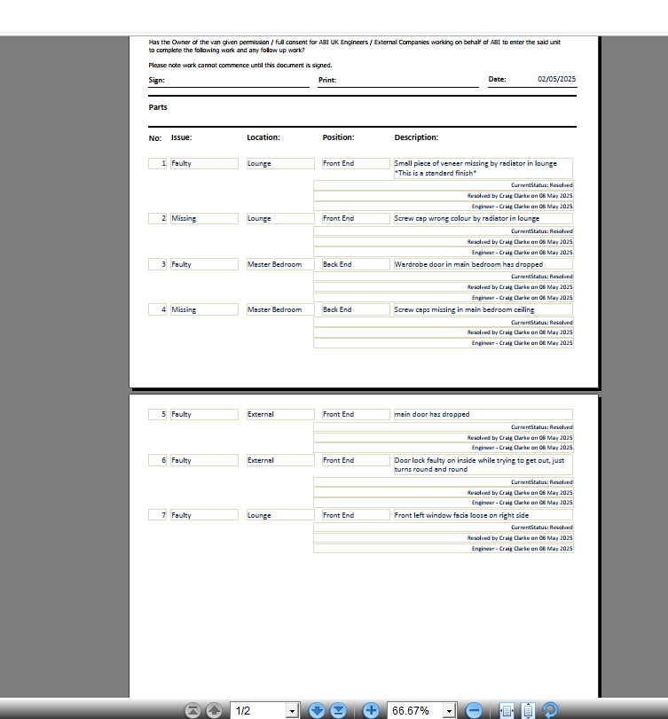 | Issue Type | Ext Doors & Windows (4 weeks) [ 4 ] | Bedroom Furniture (8 Weeks) [ 34 ] |