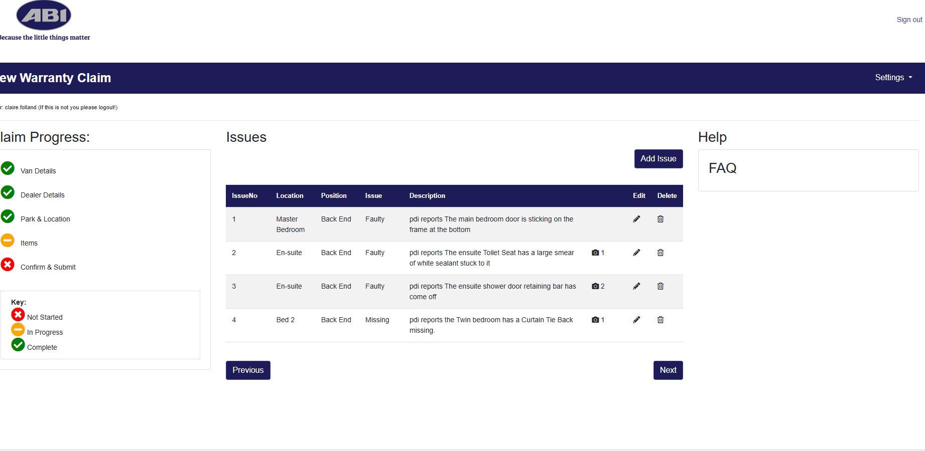 | Issue Type | Toilet/Shower (8 Weeks) [ 41 ] | Curtains (8 Weeks) [ 27 ] |
