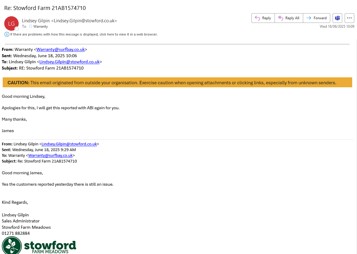 James Eginton added a comment - ABI need a photo of the issue to pass to the suppliers, have asked park for this.