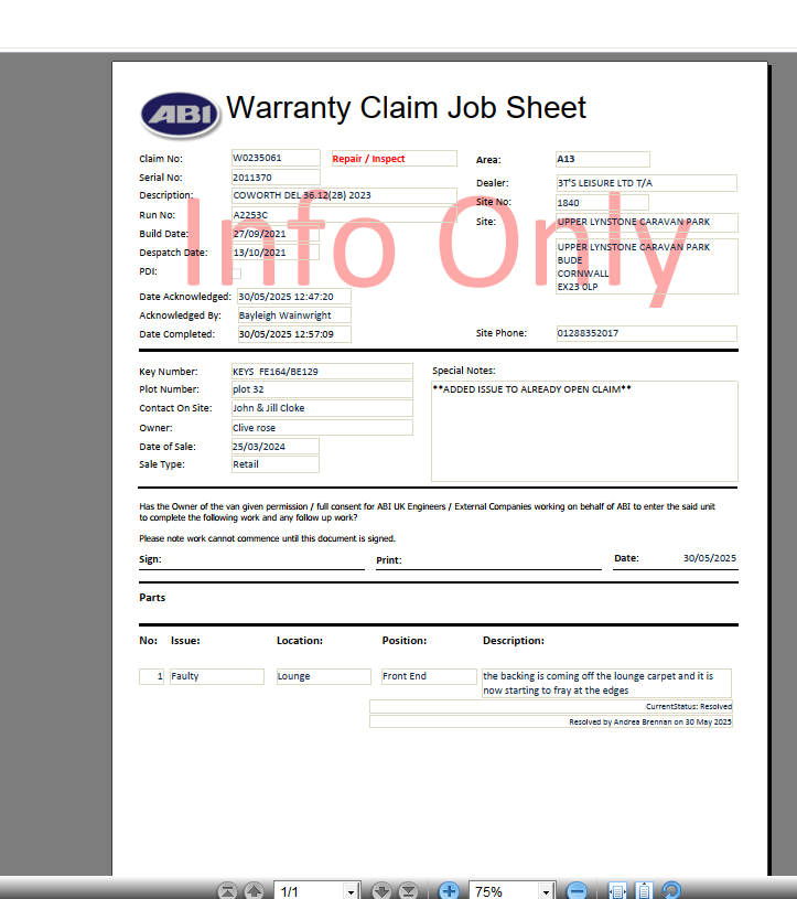 | Park_Contact | Mr John & Mrs Jill Cloke | |