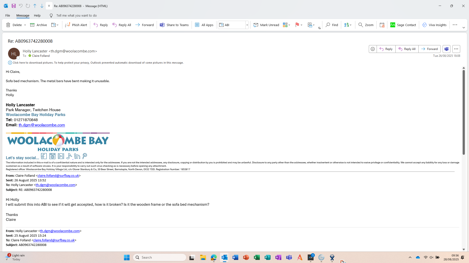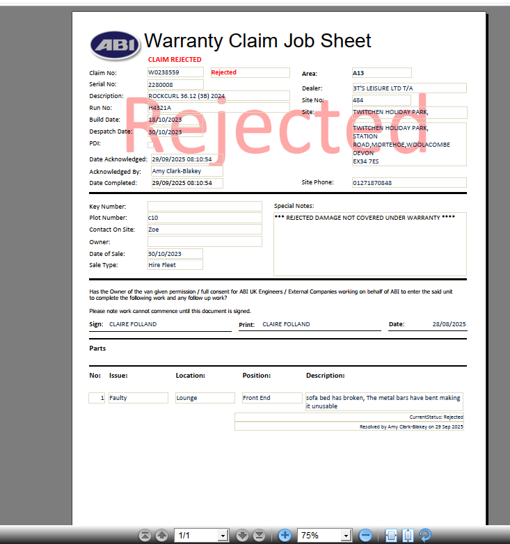 | Summary | sofa bed has broken | sofa bed has broken, The metal bars have bent making it unusable |