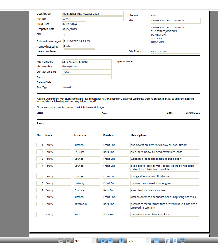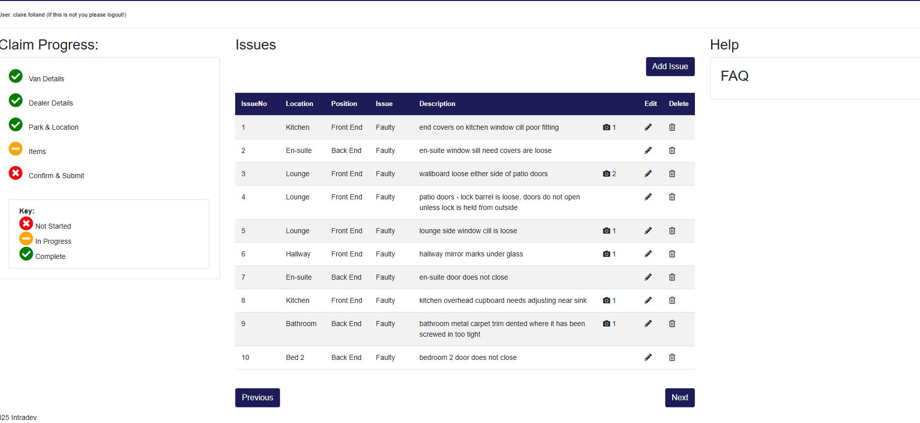 | Issue Type | Carpets and vinyls (8 weeks) [ 13 ] | Small Fittings (8 Weeks) [ 1 ] |