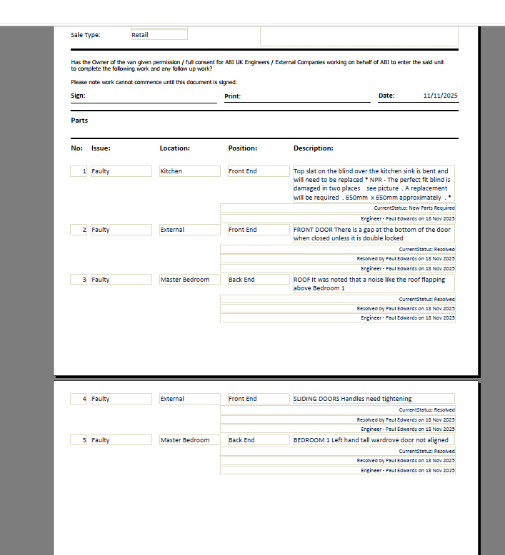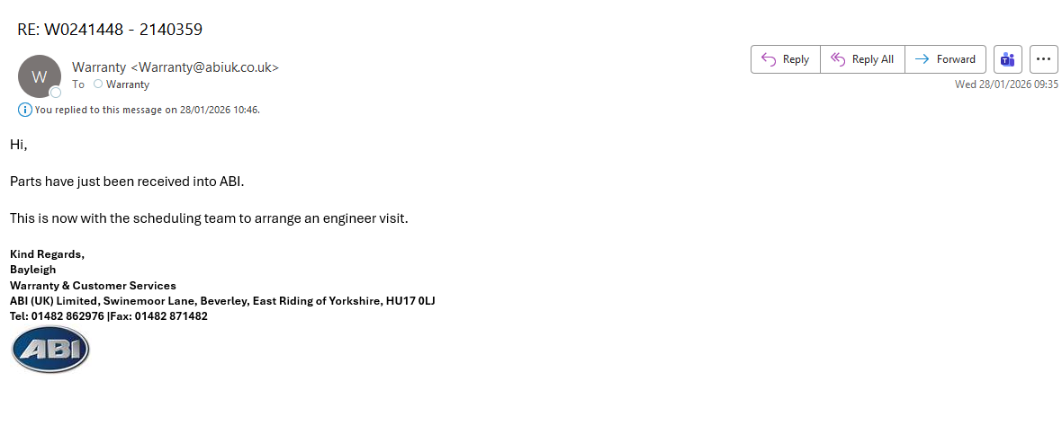 Parts ordered