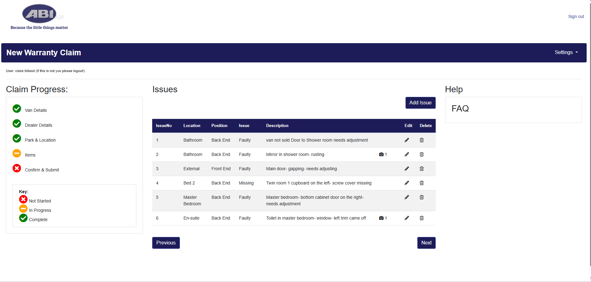 | Issue Type | Small Fittings (8 Weeks) [ 1 ] | Ext Doors & Windows (4 weeks) [ 4 ] |