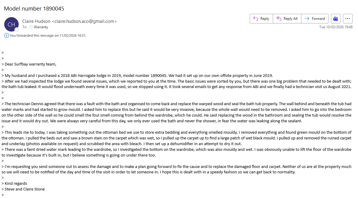 Mould in master bedroom wardrobe and carpet, has not been resolved from engineer visit in 2021