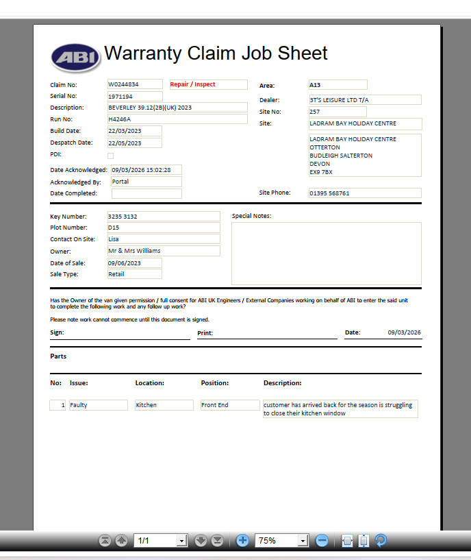 Claire Folland added a comment - Received email from park, submitted into ABI