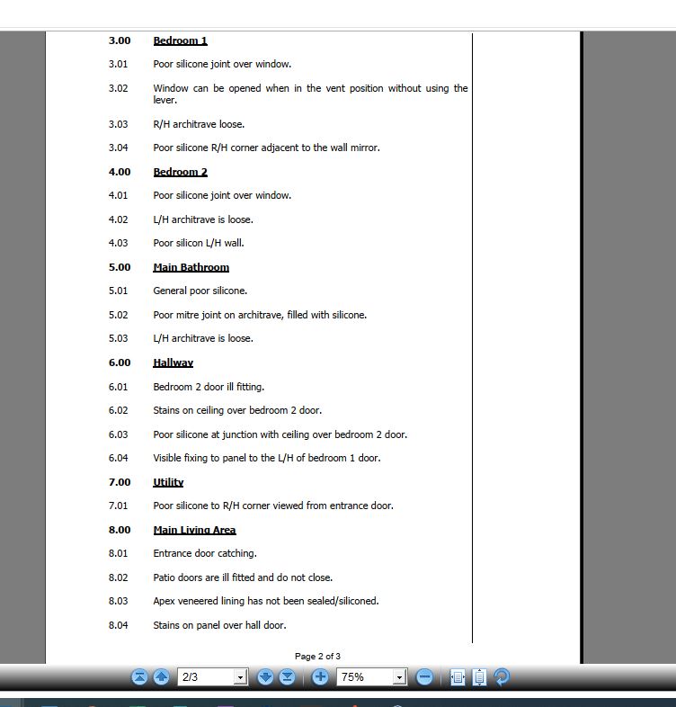 Claire Folland added a comment - Hi Claire. This claim has been assessed all none manufacturing damage re chips, marks, dents, loose fittings etc have been rejected as not covered under warranty. The numerous lines for missing or poor silicon Atlas will assess without obligation as a goodwill gesture, these should have been reported at the point of sale and in some pictures, it doesn’t look like the product colour that Atlas would use hence assess without obligation. Atlas will attend to the doors and windows. Kind Regards Julia emailed park