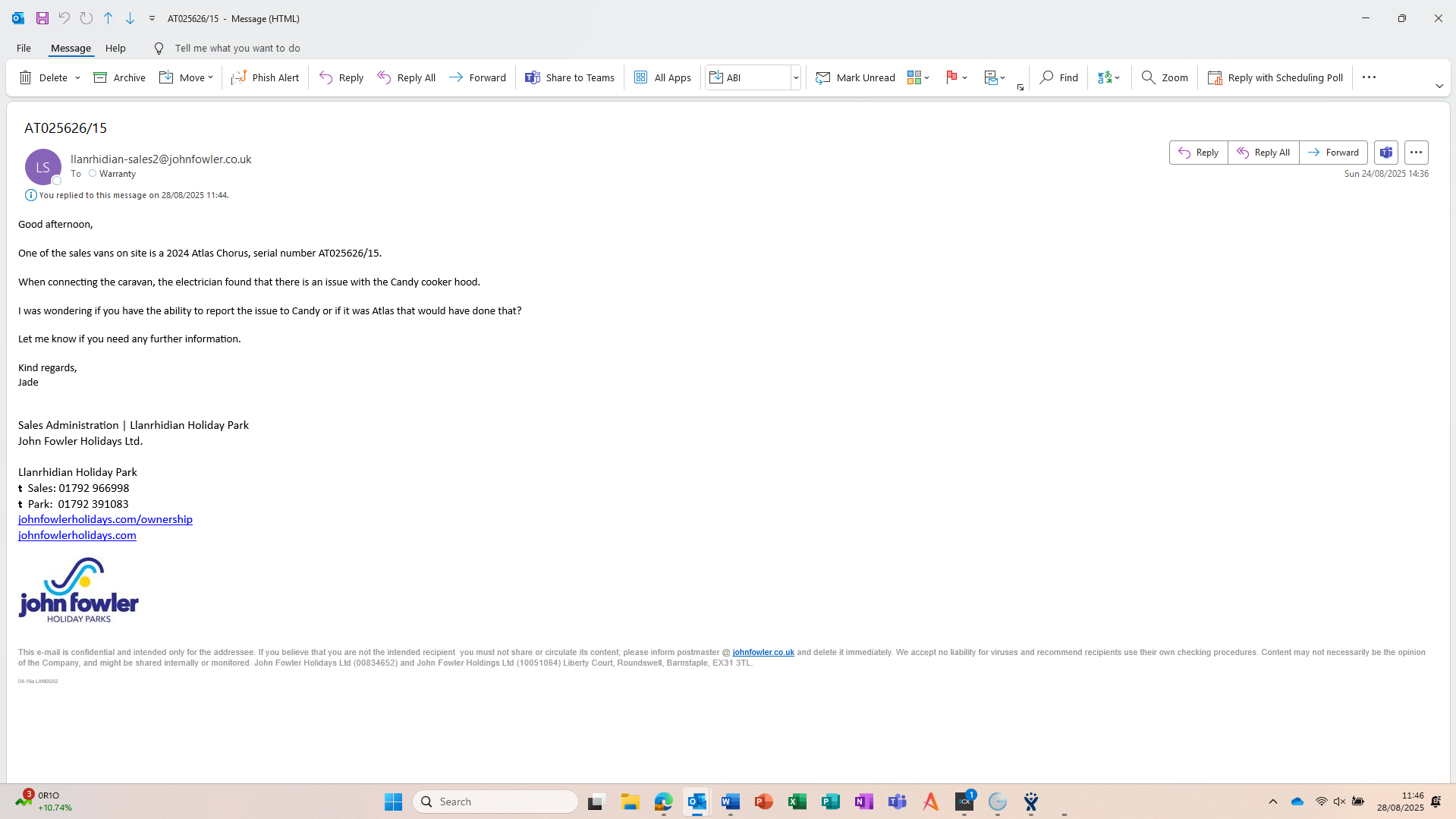 received email from Jade, i have no contact details for Candy, have asked if there is anything in the van which would help us contact them
