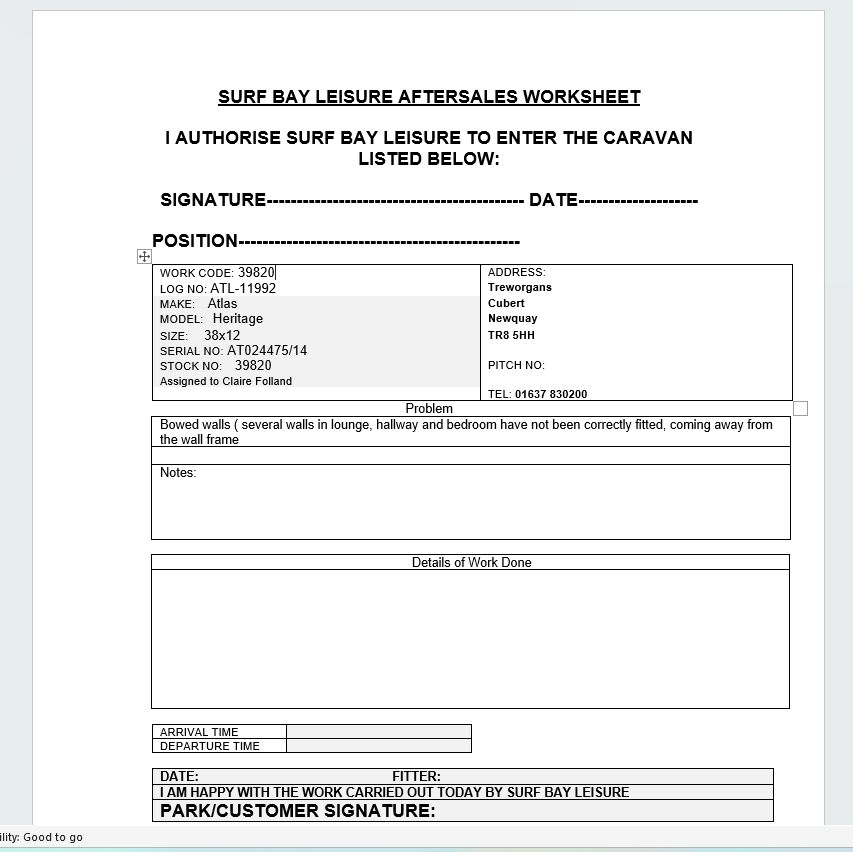 | Summary | CLONE - Foot stall missing | Bowed walls ( several walls in lounge, hallway and bedroom have not been correctly fitted, coming away from the wall frame |
