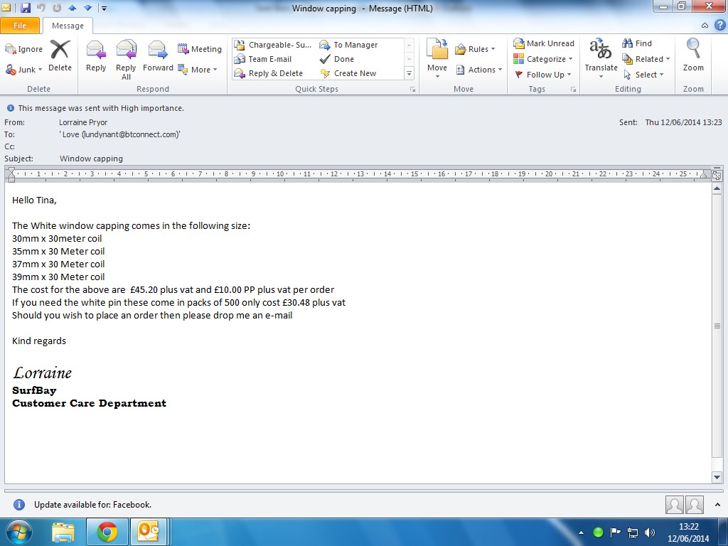 | Quote amount | £94.50 plus vat and delivery is £20.00 plus vat | |