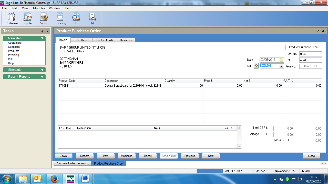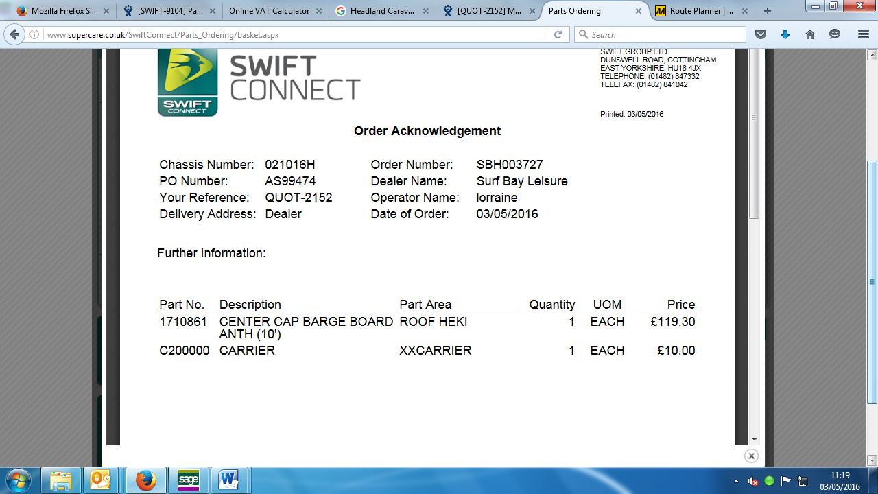 03.05.16 this quote wil increase by £10.00 plus vat as swift now charged this for every order placed - I have emailed Mayflower to update them
