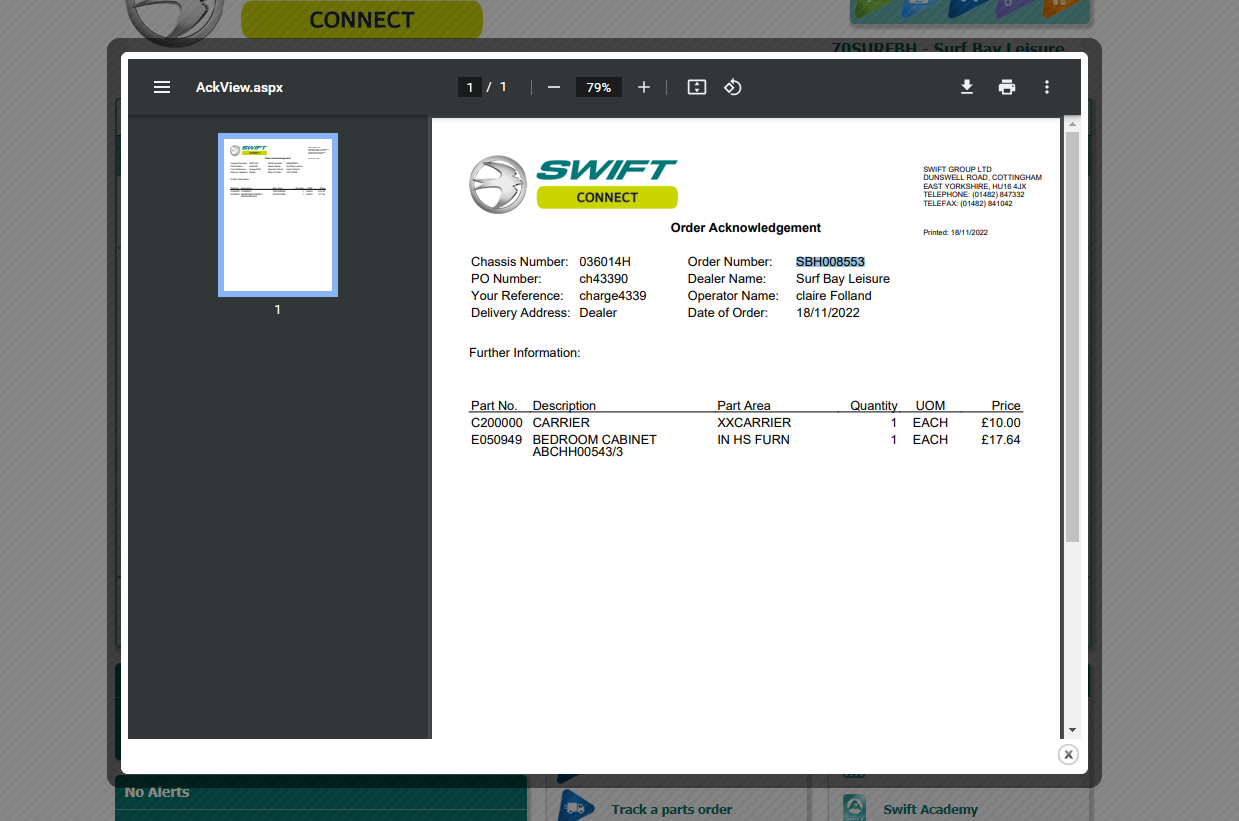 received email from park, submitted parts enquiry
