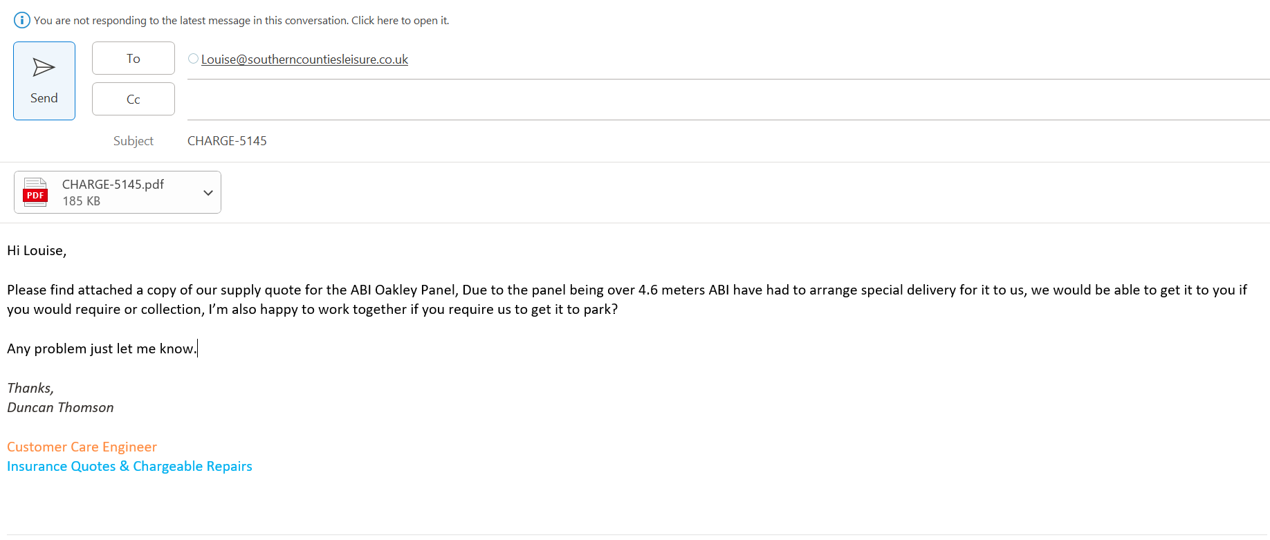 SCL have been asked to quote for the same job as Quot-3609.