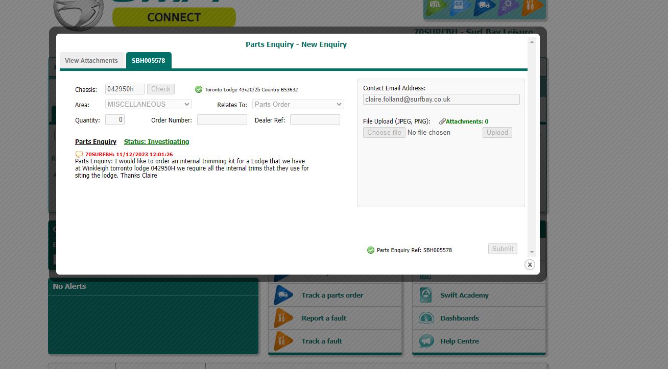 Claire Folland added a comment - swift are not giving me the correct part numbers, steve has taken photos of the parts we require, submitted another PER