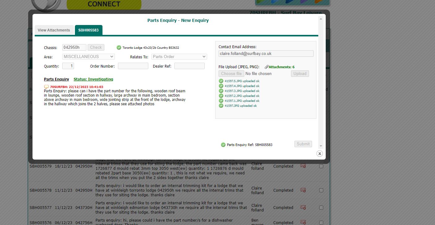 Can not see Heather has placed an order for this, submitted parts enquiry