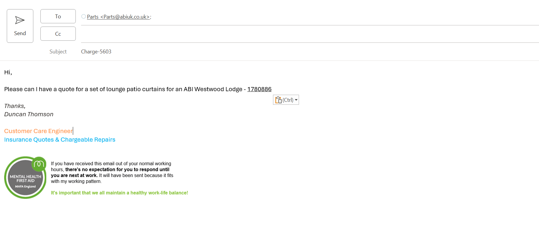 Status: Price quoted