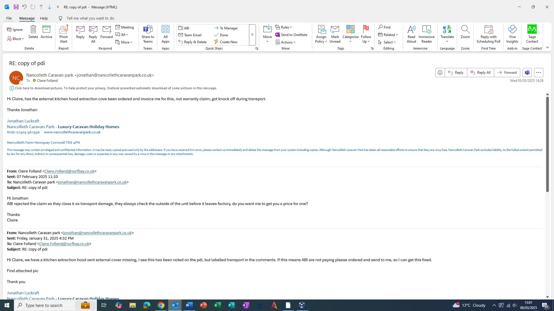 Claire Folland added a comment - Jonathan noticed this was missing, advised it would be transport damage, he would like me just to order one and send him the invoice, emailed ABI