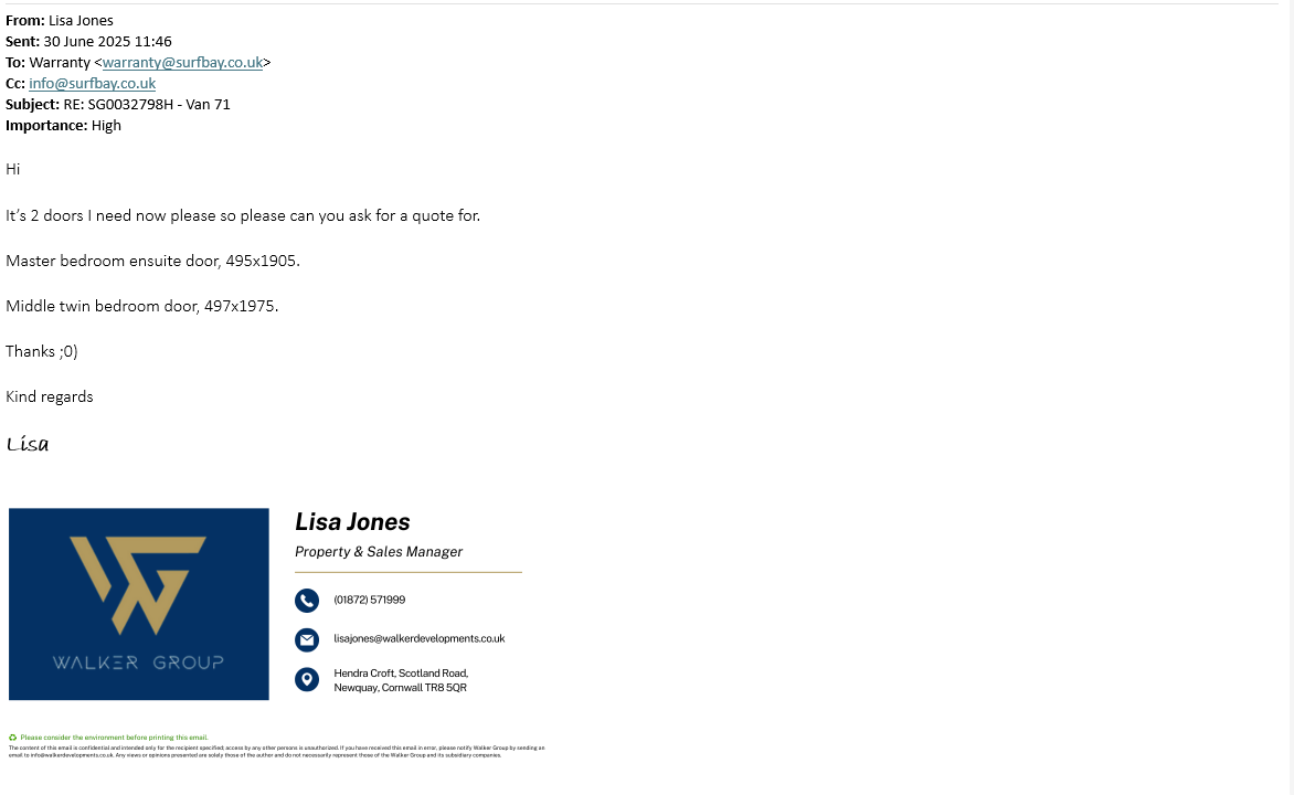 | Summary | Price for a master bedroom ensuite and twin bedroom door | Price for a master bedroom, ensuite and twin bedroom door |