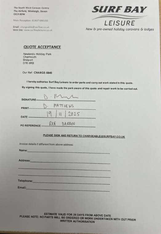 Quote sent to the park.