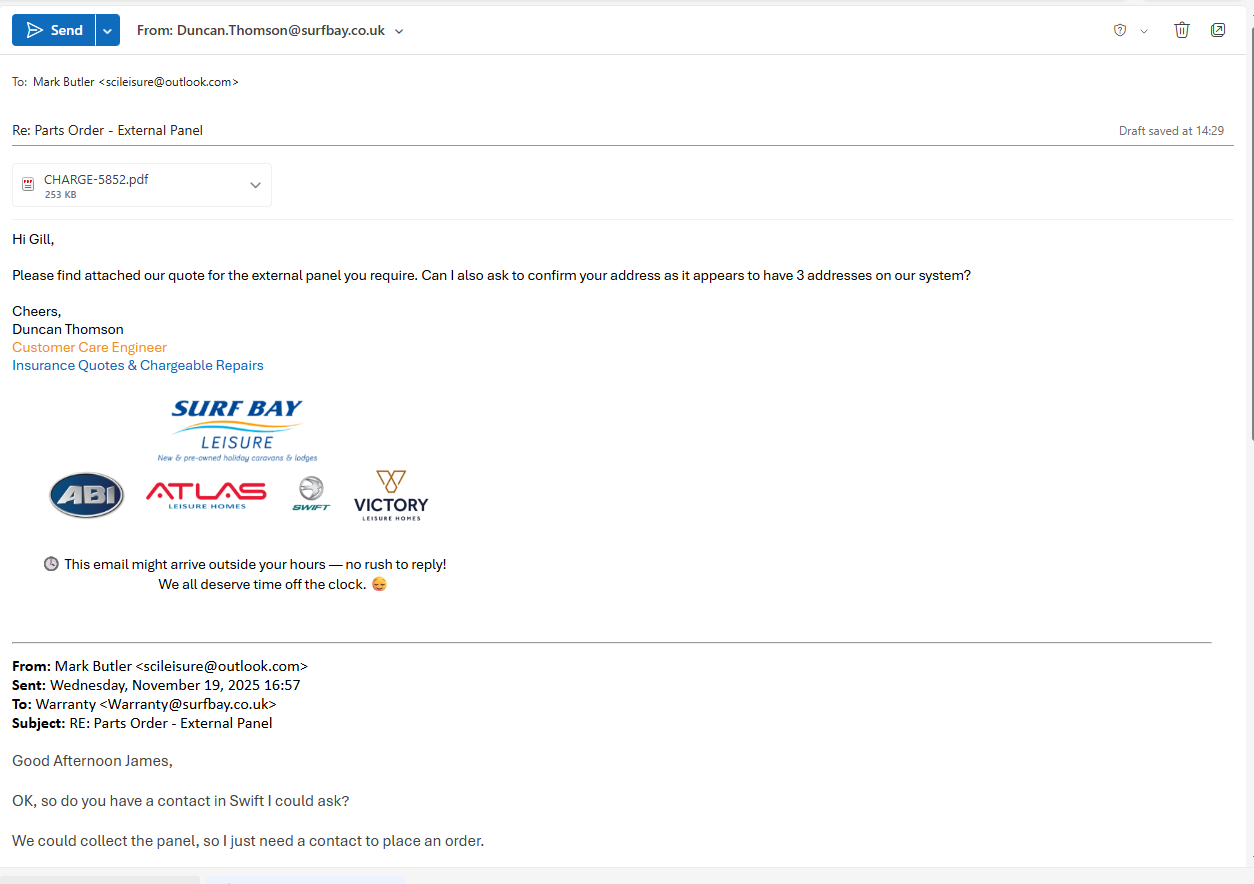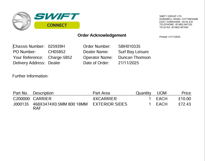 | Parts_Delivered_to | Surf Bay Winkleigh [ 10852 ] | |