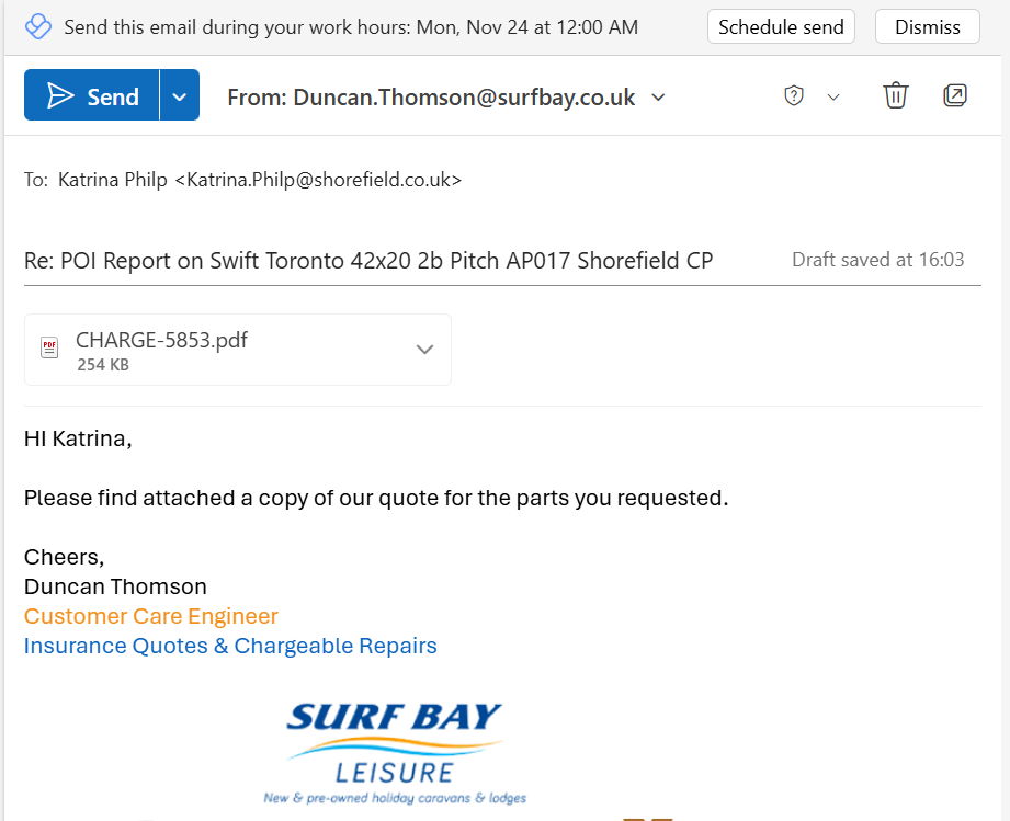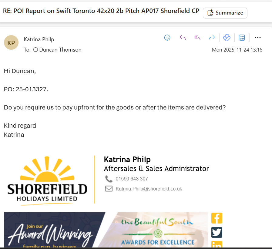 Duncan Thomson added a comment - Parts ordered and to be delivered direct to site