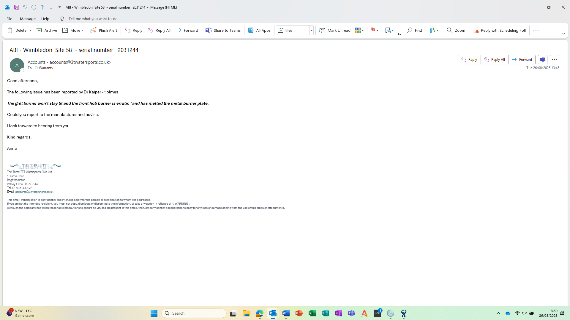 2. W0238567 the front hob burner is erratic ’ and has melted the metal burner plate