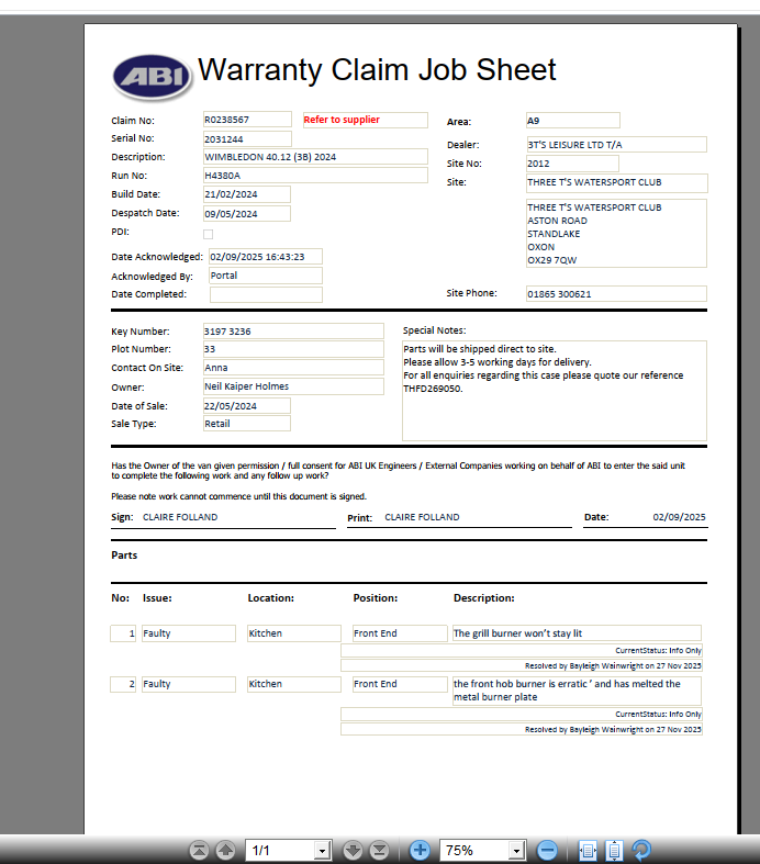 | Issue Type | Grill [ 100 ] | Hob (2 Weeks) [ 22 ] |