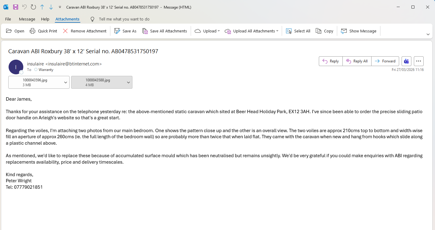 James Eginton added a comment - Parts enquiry submitted to ABI.