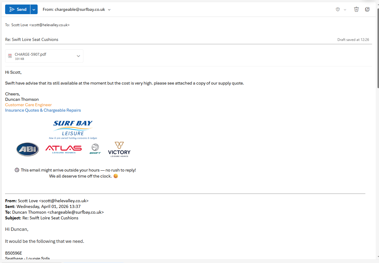 | Summary | Quote to supply new sofa | Quote to supply new sofa base cushion |