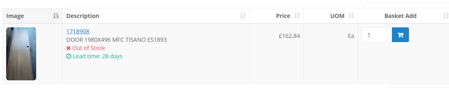 | Part Number | 1718908 DOOR 1980X496 MFC TISANO ES1893 |