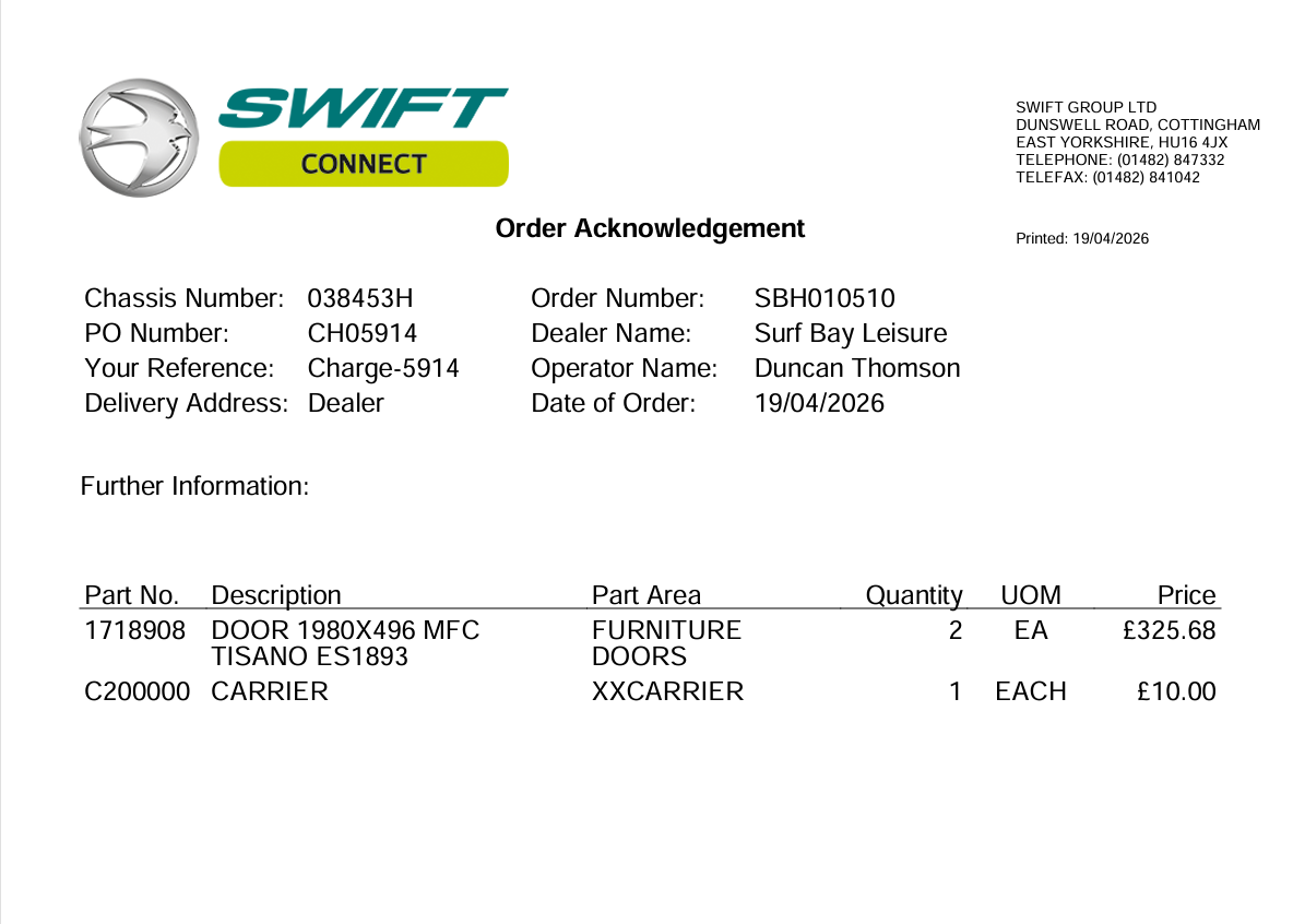 Can you please order 2 x bathroom doors for Swift Ardennes SG038453H (our OVG14) and SG038459H (our OVG6) Thanks ๐ Kind regards, Rachel Reception & Reservations Team |