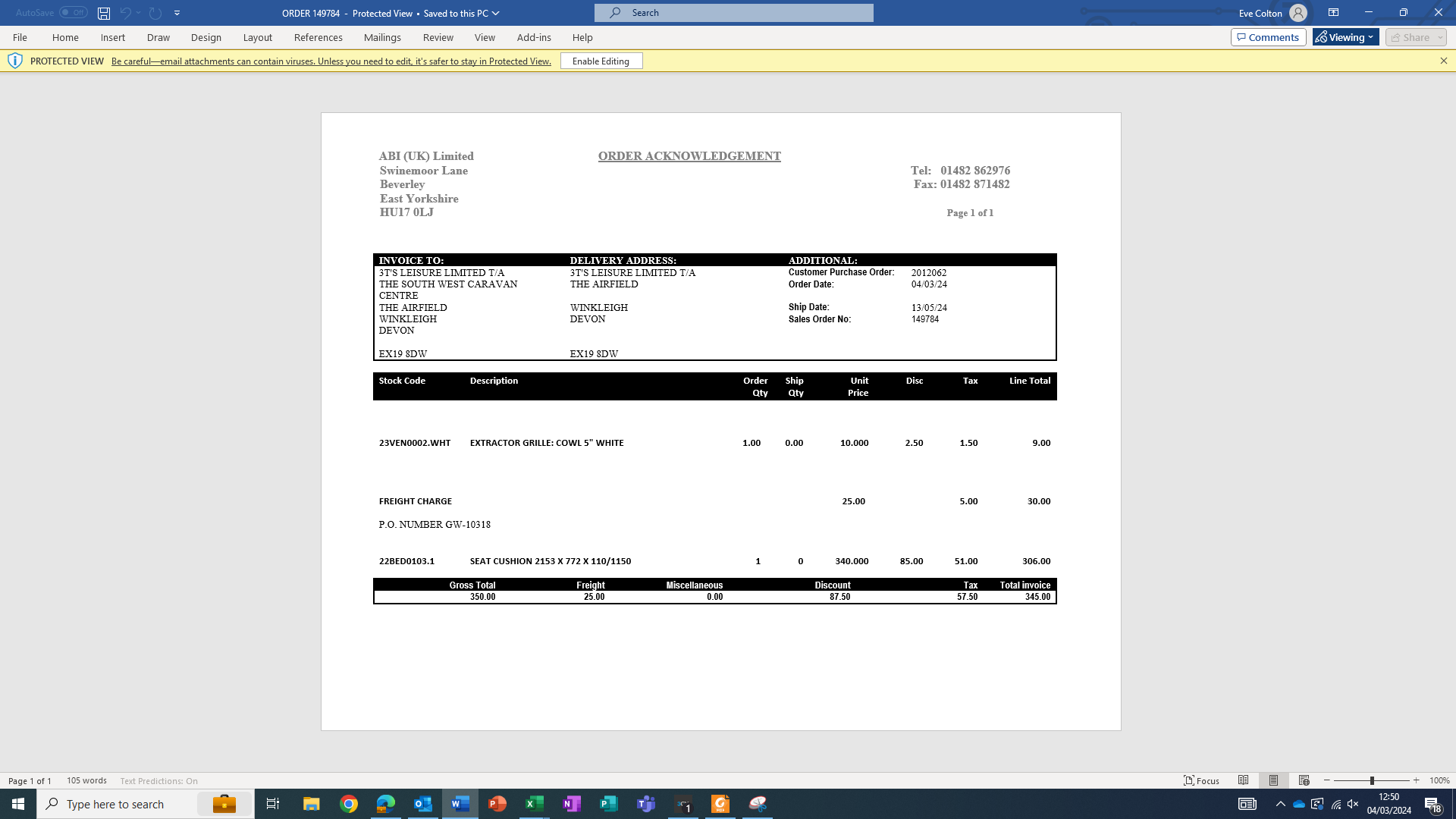 James Eginton added a comment - Part received and placed on rack, worksheet issued.