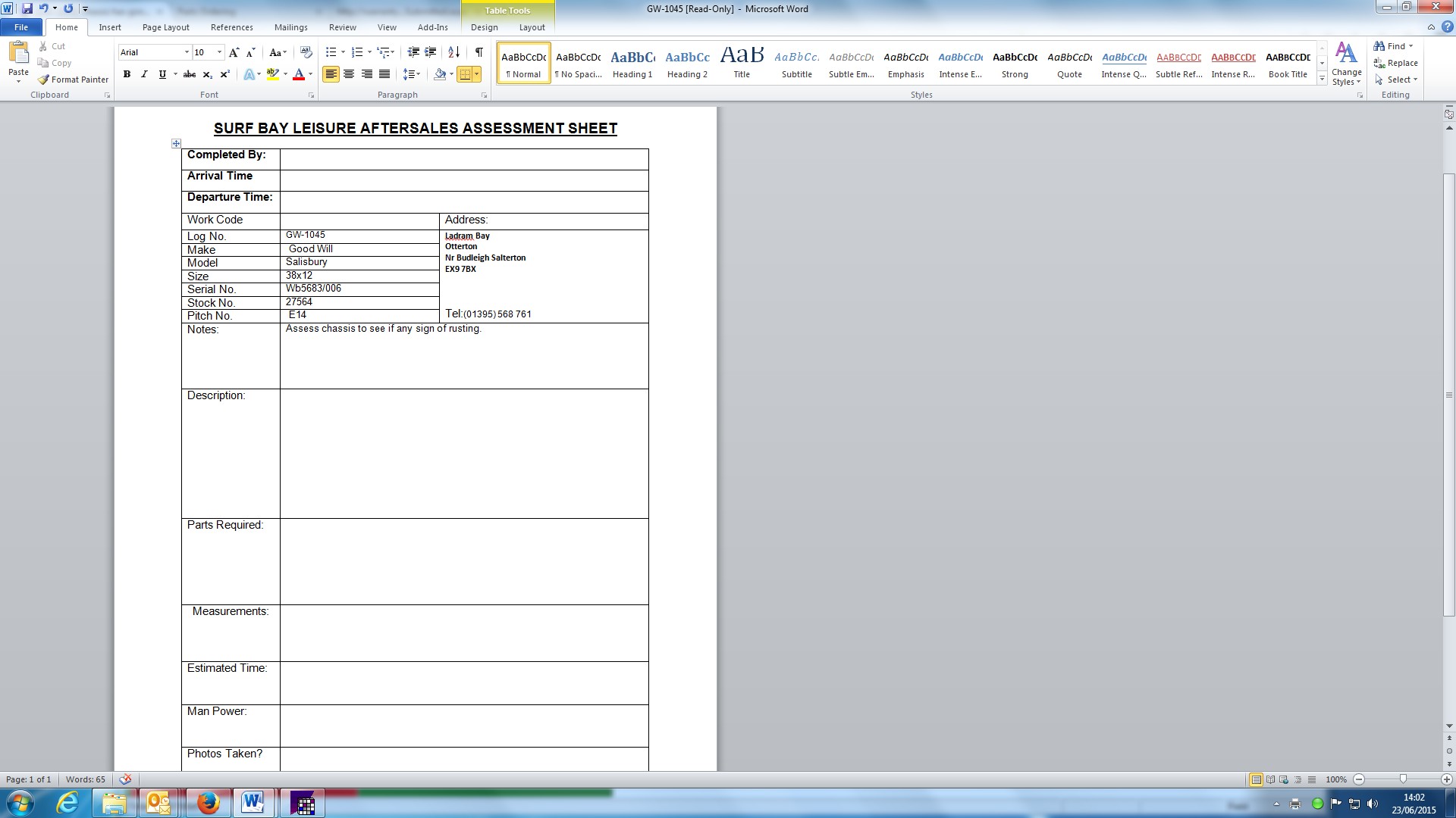 | Status | Parts Recieved [ 10003 ] | Worksheet Issued [ 10004 ] |
